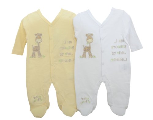 Baby Giraffe I am Growing, Long Sleeve Baby Sleep Suit/Grow (Newborn) (White)