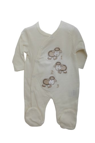 Baby Unisex Long Sleeve Sheep Design Embroidered Sleepsuit/Grow (0-3 Months) (Cream)