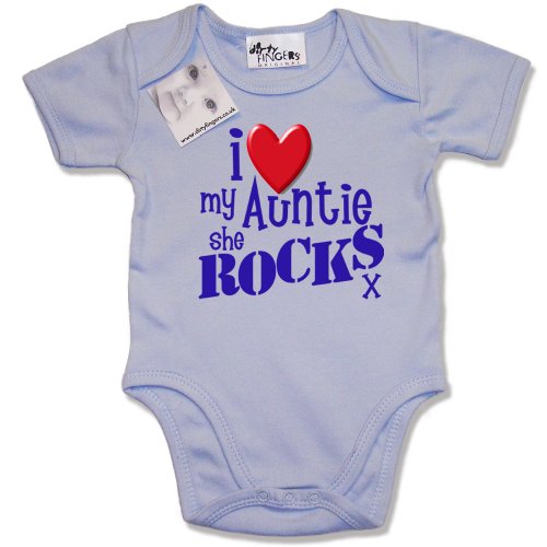 Dirty Fingers - I Love my AUNTIE she Rocks x - Baby & Toddler Short Sleeve Bodysuit / BabyGrow, 3-6 months, Blue