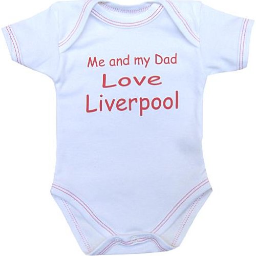This is an envelope neck bodysuit specially designed so that it does not pull your baby's ears off. It has popper fasteners at the bottom for easy dressing. This is a quality UK made garment that will help you to show your love for Liverpool. It is made from 100% Cotton and machine washable at 40 degrees. Available in sizes newborn, 0-3, 3-6, 6-9 and 9-12 months.