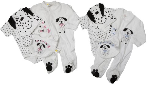 Baby 5 Piece Giftset, Spotted Dog Design Embroidered Set (Newborn) (Blue)