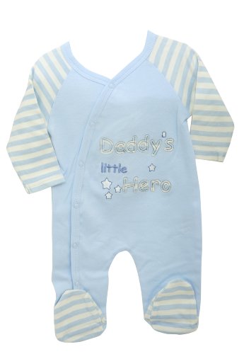 Baby Boys Blue Daddys Hero Design Embroidered Long Sleeve Sleep Suit/Baby Grow (0-3 Months) (Blue)