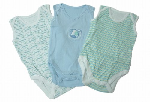 Baby Boys Dog Pattern Sleeveless Bodysuits Allergy Free (Pack of 3) (Height: 74-80cm, Weight: 10.5kg (9-12 Months)) (Blue)