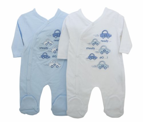 Baby Boys Long Sleeve Sleepsuit/Grow, Embroidered Car Design (0-3 Months) (White)