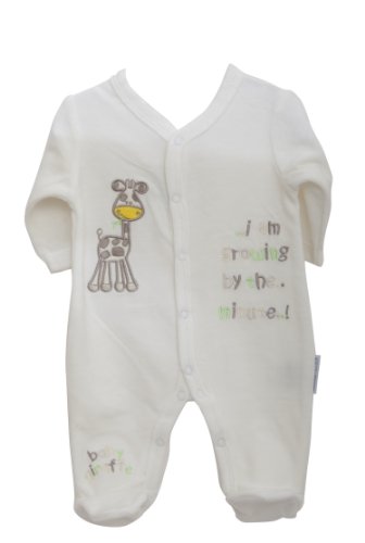 Baby Unisex Giraffe Design Embroidered Long Sleeve Supersoft Velour Sleepsuit/Baby Grow (0-3 Months) (Cream)