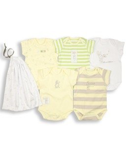 Really Essential! Our 5 pack of bodysuits are made from 100% finest cotton so really soft against baby's skin.They have an envelope shaped neck which means you can pop over baby's head really easily. Fully poppered opening for easy nappy changing. They come with a self fabric drawstring bag - really practical (and free!) Every new mum needs lots of these.