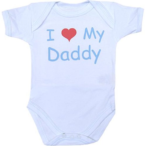 This is an envelope neck bodysuit specially designed so that it does not pull your baby's ears off. It has popper fasteners at the bottom for easy dressing. This is a quality UK made garment that will help you to show your love for your Daddy. It is made from 100% Cotton and machine washable at 40 degrees. Available in sizes newborn, 0-3, 3-6, 6-9 and 9-12 months.