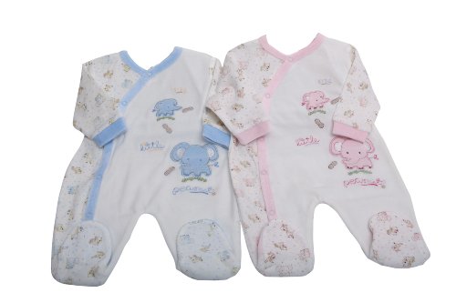 Babies Boys/Girls Elephant Design Long Sleeve Sleep Suit/Baby Grow in Velour (Newborn) (Pink)