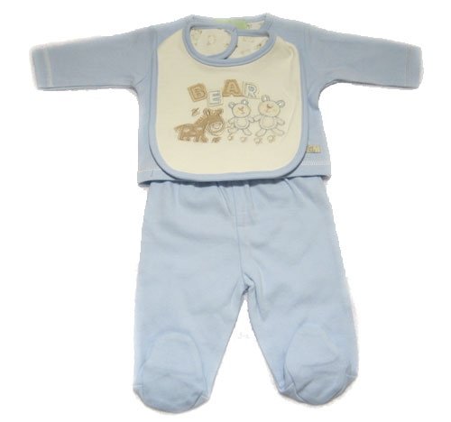 Baby Boy Set with Bib, Bear Pattern Allergy Free (Blue) (Newborn) (Blue)