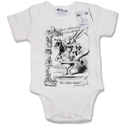 Dirty Fingers - The White Rabbit, Alice's Adventures in Wonderland - Baby & Toddler Short Sleeve Bodysuit / BabyGrow, 0-3 months, White