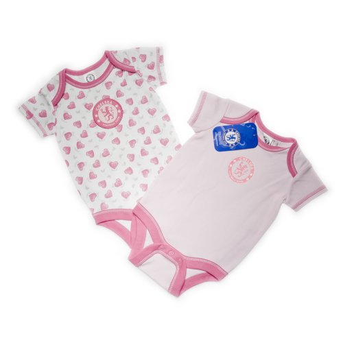 Chelsea Football Club Girls 2 Pack Bodysuits (White/Pink, 3 to 6 Months)