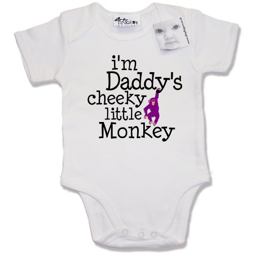 Dirty Fingers I'm Daddy's cheeky little Monkey Baby & Toddler Short Sleeve Bodysuit / BabyGrow, 3-6 months, White