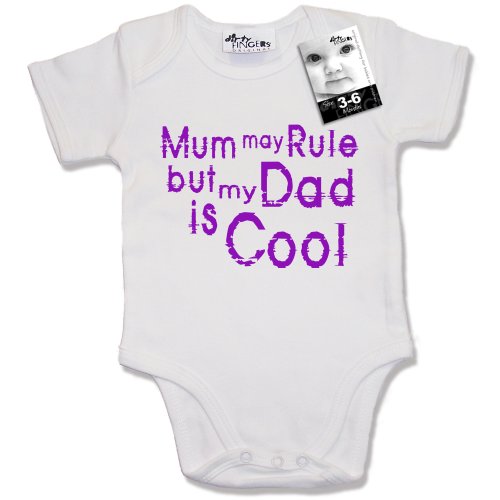 Dirty Fingers - Mum may Rule but my Dad is Cool - Baby & Toddler Short Sleeve Bodysuit / BabyGrow, 0-3 months, White