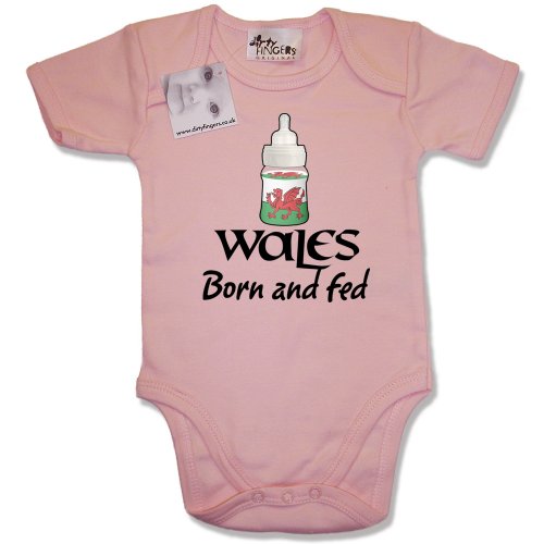 Dirty Fingers - WALES Born and Fed - Baby & Toddler Short Sleeve Bodysuit / BabyGrow, 3-6 months, Pink