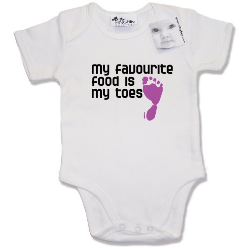 Dirty Fingers My favourite food is my Toes Baby & Toddler Short Sleeve Bodysuit / BabyGrow, 6-12 months, White