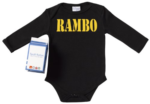 Spoilt Rotten - Rambo Babygrows / Bodysuit Alternative Baby Clothes 100% Organic Sizes 0-6 months in funky Milk Carton BLACK