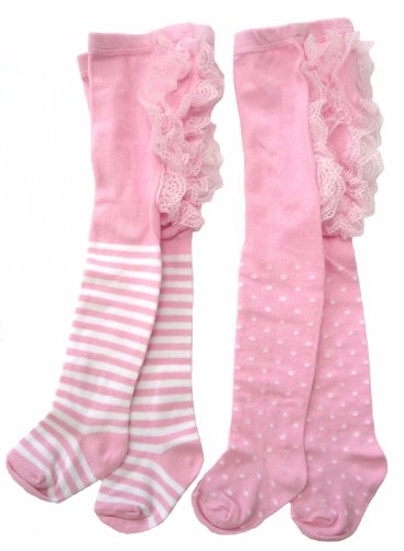 These tights will compliment any outfit and are great as an extra layer under dresses and skirts where you can show off your frilly bottom! One pair stripes and the other pair spots presented in a gift box. They are made of cotton, polymide, elastane mix to help keep them shape. Machine washable.