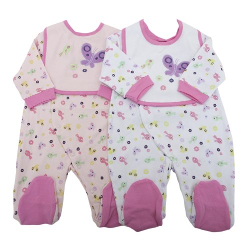 Babies Girls Butterfly And Bird Embroidered Long Sleeved Sleep Suit Grow with Bib Set (Newborn) (White Patterned)