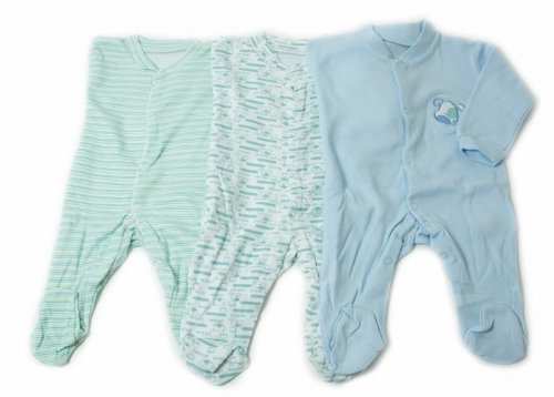Baby Boys Long Sleeve Baby Grows/Sleepsuits Allergy Free (Pack of 3) (Height: 74-80cm, Weight: 10.5kg (9-12 Months)) (Blue)