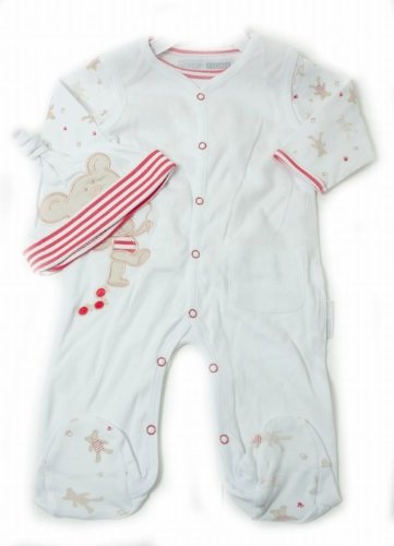 Baby Sleepsuit & Long T-Shirt Set with Hat Bear Design, Allergy Free (3-6 months) (White/Red)