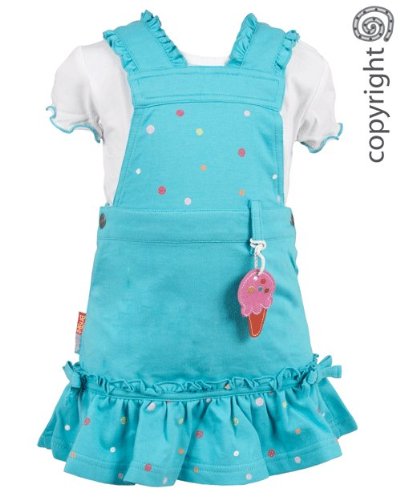 Your little girl will look gorgeous this summer in this pinafore dress. The dress has adjustable straps side pockets and a flouncy hem with two little bows on either side. It also has sequins sewn onto the front chest panel and the flouncy hem. It comes complete with a white shirt underneath that has lettuce frilled edging on the sleeve which matches the colour of the dress.