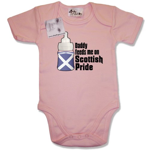 Dirty Fingers Daddy feeds me on Scottish Pride Baby & Toddler Short Sleeve Bodysuit / BabyGrow, 3-6 months, Pink