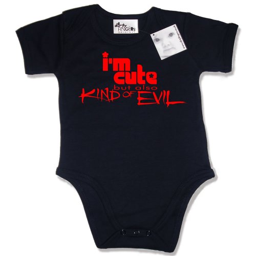 Dirty Fingers - I'm cute but also Kind of Evil - Baby & Toddler Short Sleeve Bodysuit / BabyGrow, 3-6 months, Black