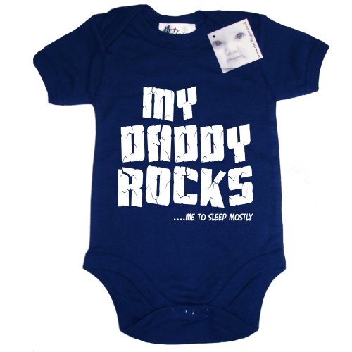 Dirty Fingers - My Daddy Rocks....me to sleep mostly - Baby & Toddler Short Sleeve Bodysuit / BabyGrow, 3-6 months, Navy