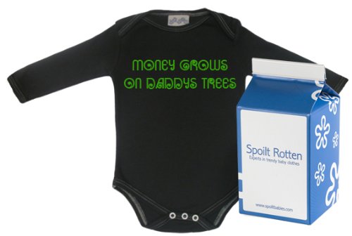 Spoilt Rotten - Money Grows On Daddys Trees Babygrows / Bodysuit Alternative Baby Clothes 100% Organic Sizes 0-6 months WHITE/BLACK in funky Milk Carton