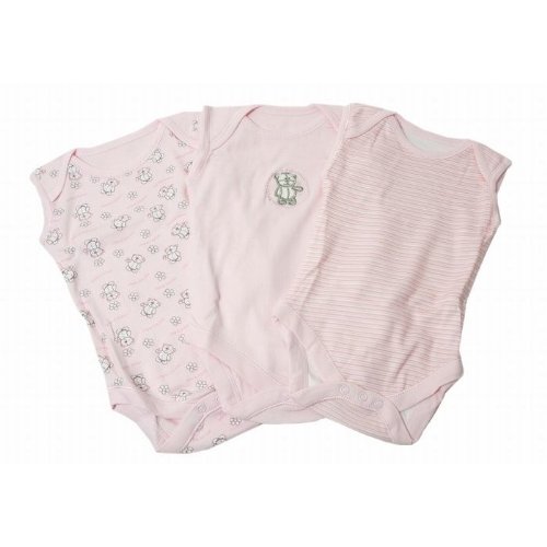 Baby Girls Bear Pattern Sleeveless Bodysuits Allergy Free (Pack of 3) (Height: 80-86cm, Weight: 12kg (12-18 Months)) (Pink)