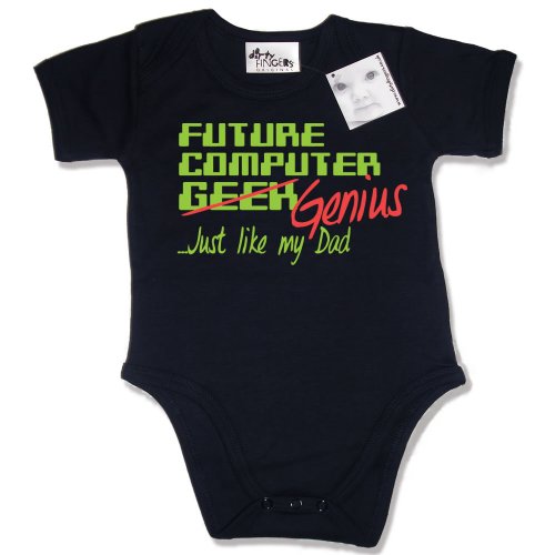 Dirty Fingers - Future Computer Geek (Genius) just like my Dad - Baby & Toddler Short Sleeve Bodysuit / BabyGrow, 6-12 months, Black