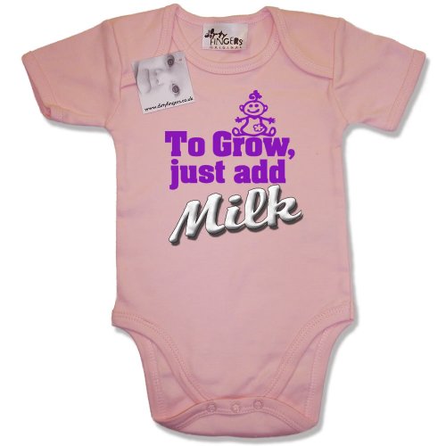 Dirty Fingers - To Grow just add Milk (Baby Girl logo) - Baby & Toddler Short Sleeve Bodysuit / BabyGrow, 3-6 months, Pink