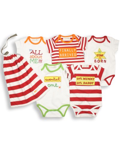 Really Essential! Our 5 pack of bodysuits are made from 100% finest cotton so really soft against baby's skin.They have an envelope shaped neck which means you can pop over baby's head really easily. Fully poppered opening for easy nappy changing. They come with a self fabric drawstring bag - really practical (and free!) Every new mum needs lots of these.