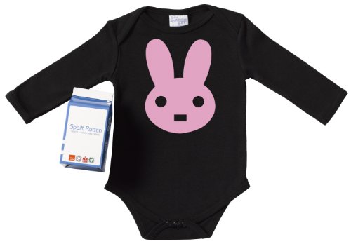 Spoilt Rotten - Bunny Babygrows / Bodysuit Alternative Baby Clothes 100% Organic Sizes 0-6 months in funky Milk Carton BLACK