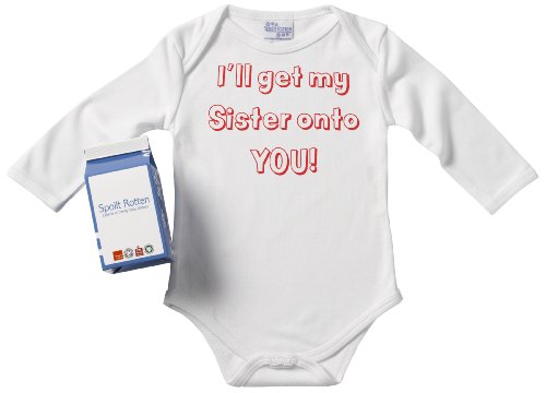 Spoilt Rotten - I'll Get My Sister Onto You! Babygrows / Bodysuit Alternative Baby Clothes 100% Organic Sizes 0-6 months + in funky Milk Carton WHITE