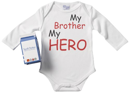 Spoilt Rotten - My Brother My Hero Babygrows / Bodysuit Alternative Baby Clothes 100% Organic Sizes 0-6 months + in funky Milk Carton WHITE
