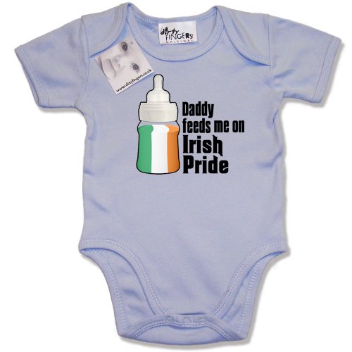 Dirty Fingers - Daddy feeds me on Irish Pride - Baby & Toddler Short Sleeve Bodysuit / BabyGrow, 6-12 months, Blue
