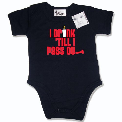 Dirty Fingers - I drink 'till I pass out - Baby & Toddler Short Sleeve Bodysuit / BabyGrow, 6-12 months, Black