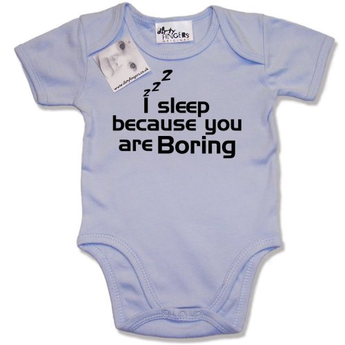 Dirty Fingers - I sleep because you are boring - Baby & Toddler Short Sleeve Bodysuit / BabyGrow, 0-3 months, Blue