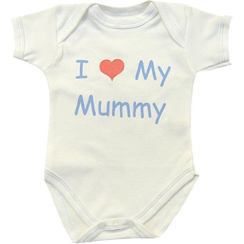 This is an envelope neck bodysuit specially designed so that it does not pull your baby's ears off. It has popper fasteners at the bottom for easy dressing. This is a quality UK made garment that will help you to show your love for your Mummy. It is made from 100% Cotton and machine washable at 40 degrees. Available in sizes newborn, 0-3, 3-6, 6-9 and 9-12 months.