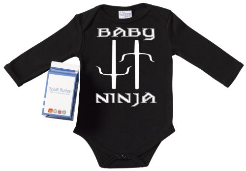 Spoilt Rotten - Baby Ninja Long Sleeve Babygrow / Bodysuit Funny Slogan 100% Organic Sizes 6-12 months in funky Milk Carton BLACK