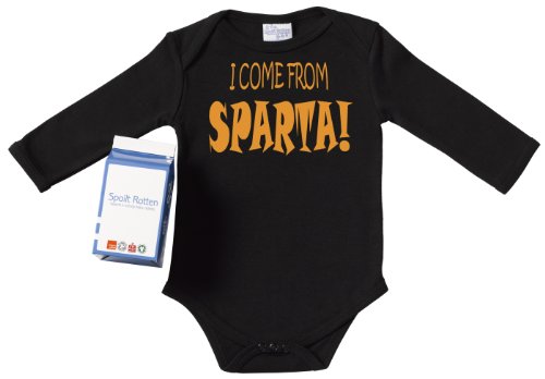 Spoilt Rotten - I Come From SPARTA! Babygrows / Bodysuit Alternative Baby Clothes 100% Organic Sizes 0-6 months in funky Milk Carton BLACK