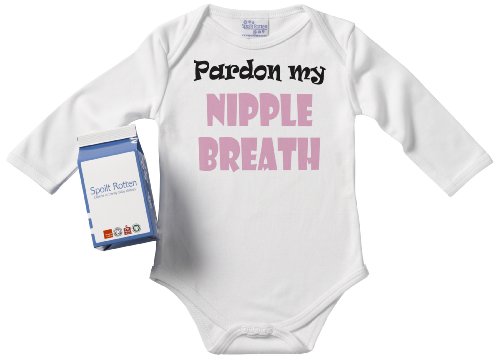 Spoilt Rotten - Pardon My Nipple Breath Long Sleeve Babygrow / Bodysuit Funny Slogan 100% Organic Sizes 6-12 months + in funky Milk Carton WHITE