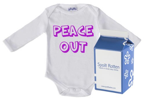 Spoilt Rotten - Peace Out Long Sleeve Babygrows / Bodysuit Alternative Baby Clothes 100% Organic Sizes 0-6 months WHITE/BLACK + in funky Milk Carton