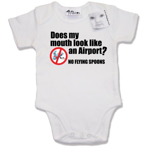 Dirty Fingers - Does my mouth look like an Airport? - Baby & Toddler Short Sleeve Bodysuit / BabyGrow, 6-12 months, White