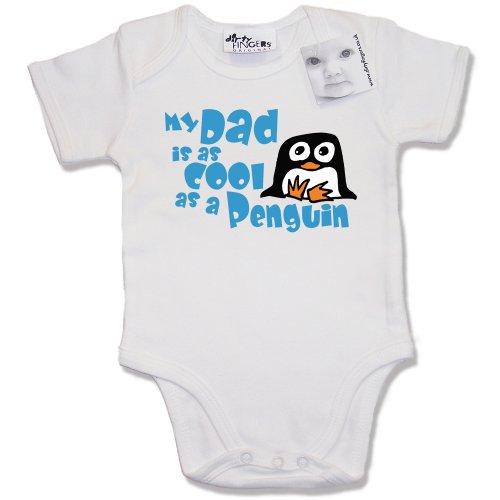 Dirty Fingers - My Dad is as Cool as a Penguin - Baby & Toddler Short Sleeve Bodysuit / BabyGrow, 0-3 months, White
