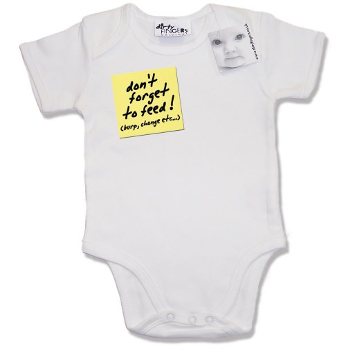 Dirty Fingers - Post-it, Don't forget to feed, Burp, Change etc.. - Baby & Toddler Short Sleeve Bodysuit / BabyGrow, 3-6 months, White