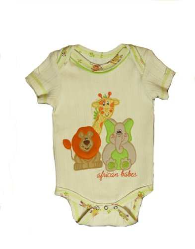 Ethically made in South Africa from 100% fair trade African cotton. The perfect gift. This super soft cotton baby grow has envelope neck and poppers between legs making dressing and changing easy. The applique baby elephant, giraffe and lion are lovely with some gorgeous embroidered detailing on making this boby suit really special.