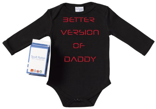 Spoilt Rotten - Better Version Of Daddy Long Sleeve Babygrows / Bodysuit Alternative Baby Clothes 100% Organic Sizes 0-6 months in funky Milk Carton BLACK