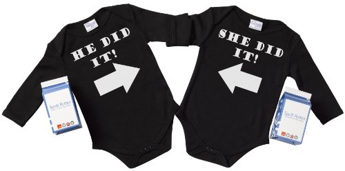 Spoilt Rotten - He Did It And She Did It Twin Set Babygrow / Bodysuit Funny Slogan 100% Organic Sizes 6-12 months BLACK in funky Milk Carton